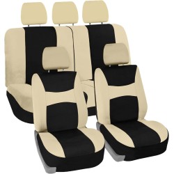 Car seat Covers Set airmesh Breathable Fashion Easy Bench Split Protectors Sport Fashion (Black Beige, Full Set - Low Back)